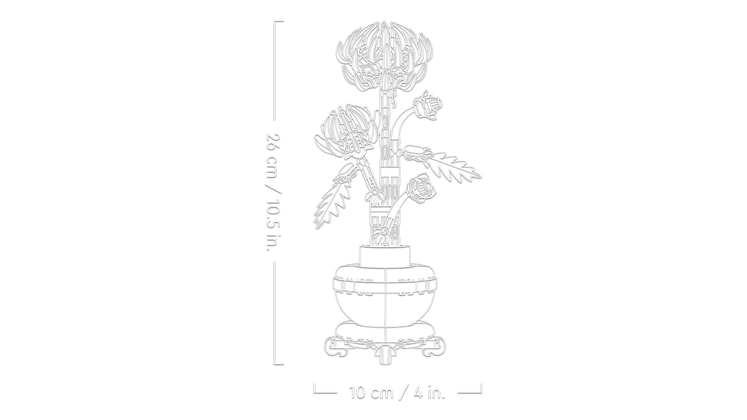 Kasvata loovust täiskasvanute kodu- ja kontorikaunistuse ehituskomplektiga LEGO Icons Krüsanteem – ajatu kingitus LEGO botaanikakollektsioonist.