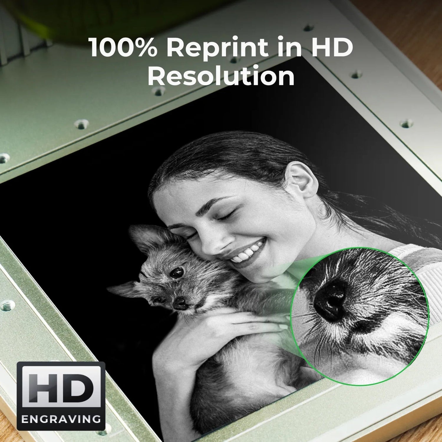* Kahelaseriline süsteem. 10 W dioodlaser sobib puidule, nahale ja akrüülile, samas kui 2 W infrapunalaser graveerib metalle nagu kuld, hõbe ja roostevaba teras, pakkudes laia materjalivalikut.