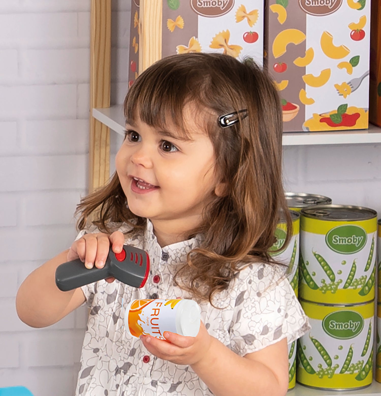 Kassaaparaadil on kõik vajalik, et laps saaks poodi mängida: kassasahtel, tõeline kalkulaator, mikrofon, pangakaardilugeja ja mehaanilise toimega kaal (kui paned sellele midagi, kohandub kuvatav kaal automaatselt).