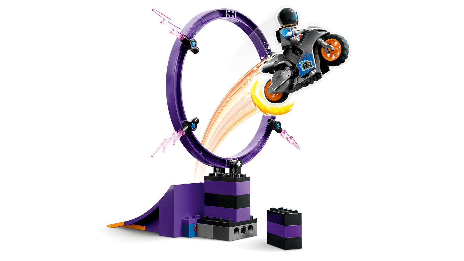 • Lõbus LEGO® City Stuntzi mäng – lapsed saavad sõita trikimootorrattaga mööda sõlme, hüpata läbi tulerõnga ja jõuda tulnukatorni tippu