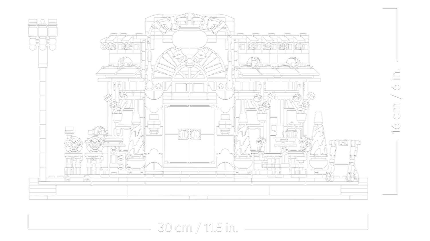 • Mõõtmed – 1101-osalise komplekti Prantsuse kohviku hoone on 16 cm kõrge, 30 cm lai ja 6 cm sügav