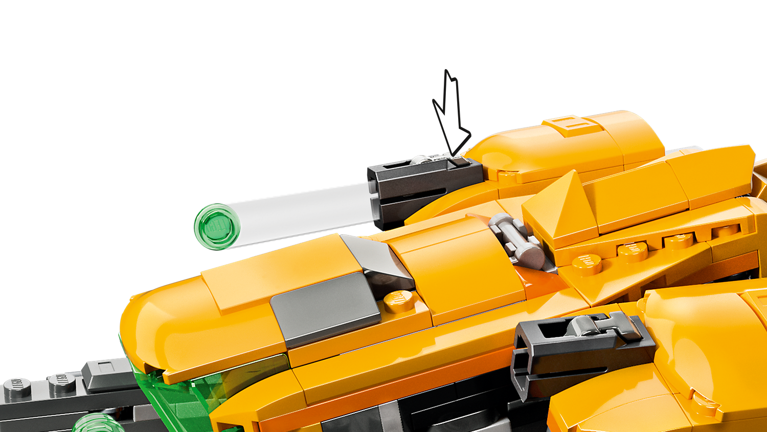 Kohandatav kosmoselaev Marvel Studiose filmist Guardians of the Galaxy Volume 3 koos Rocketi ja Beebi Rocketiga.