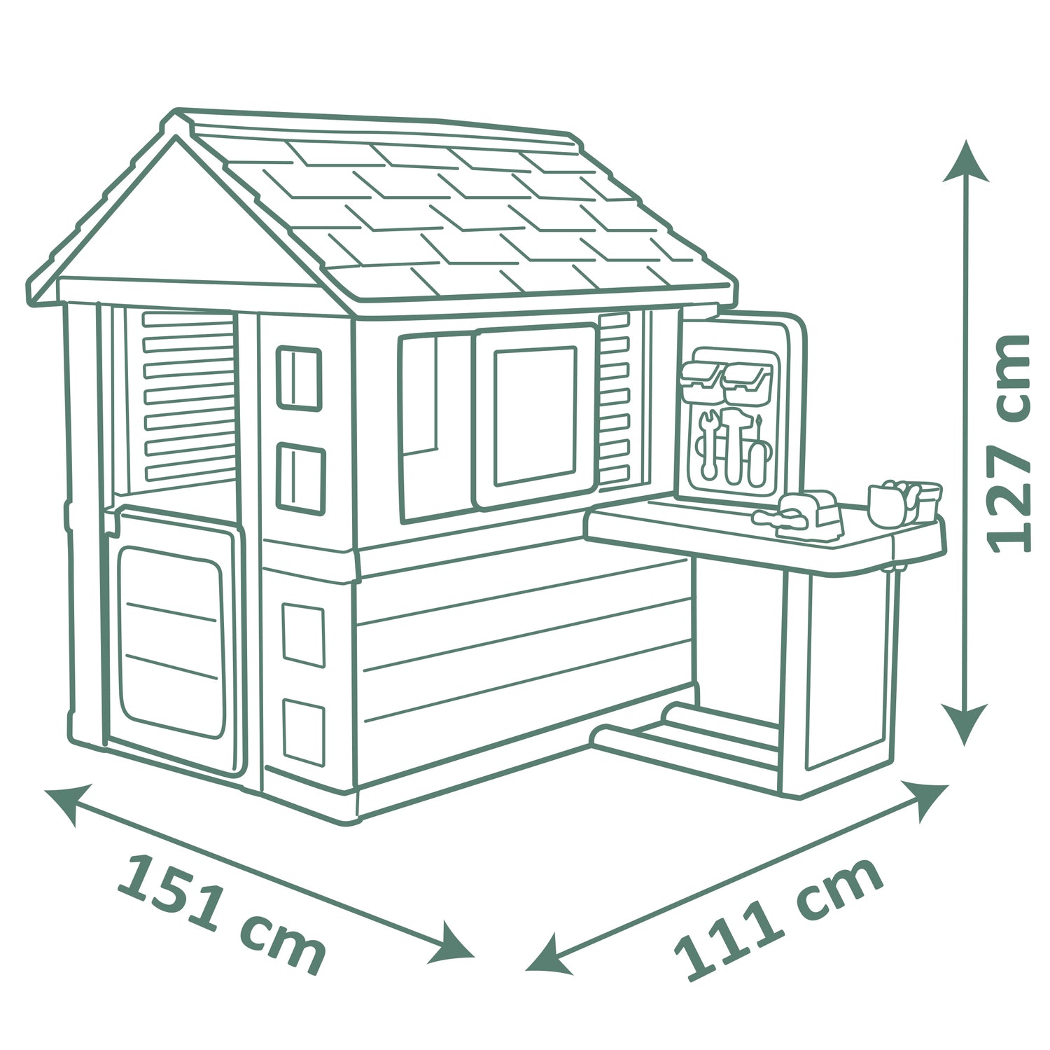 Smoby Nature mängumaja töökojaga on kvaliteetne mänguasi, mis sütitab laste kujutlusvõimet. Smoby, tuntud kvaliteetsete mänguasjade tootja, pakub mängumajas tunde lõbu ja loovat tegevust. Ruumikas interjöör ja detailne töökoja ala pakuvad lõputuid mängustsenaariume. Vastupidav konstruktsioon sobib välitingimustesse ja tagab turvalise keskkonna lapse avastustele. See mängumaja sobib ideaalselt aeda, terrassile või mängualale, pakkudes lastele arendavat ja meelelahutuslikku tegevust. Mängumajaga tuleb kaasa ka 40 aksessuaari, et oleks ikka lõbusam!