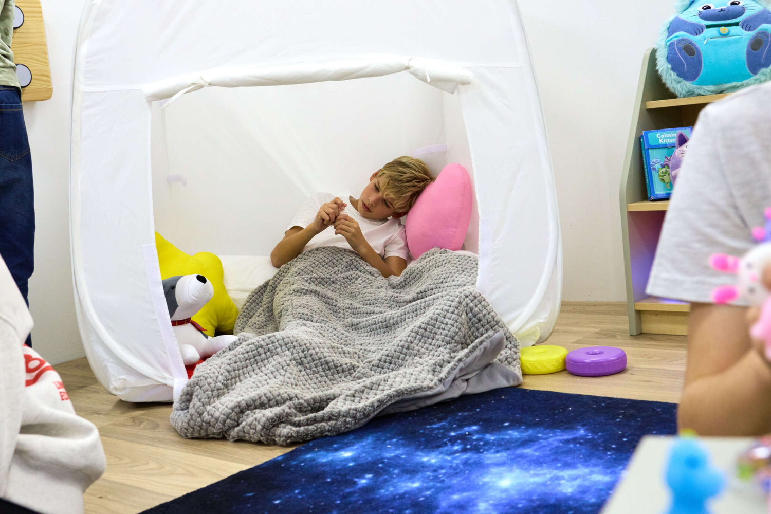 TTS tekstuuriga rahustav raskustekk 1,4kg pakub sügavat survet, et toetada rahunemist ja eneseregulatsiooni. Tekstuuriga pind lisab õrna kompimissisendit ning raskus aitab lapsel end kindlamalt tunda. Kasuta rahunemisalas, tunnetustoas või vaiksel lugemisajal. Sobib juhendatud kasutuseks lasteaias ja põhikoolis.