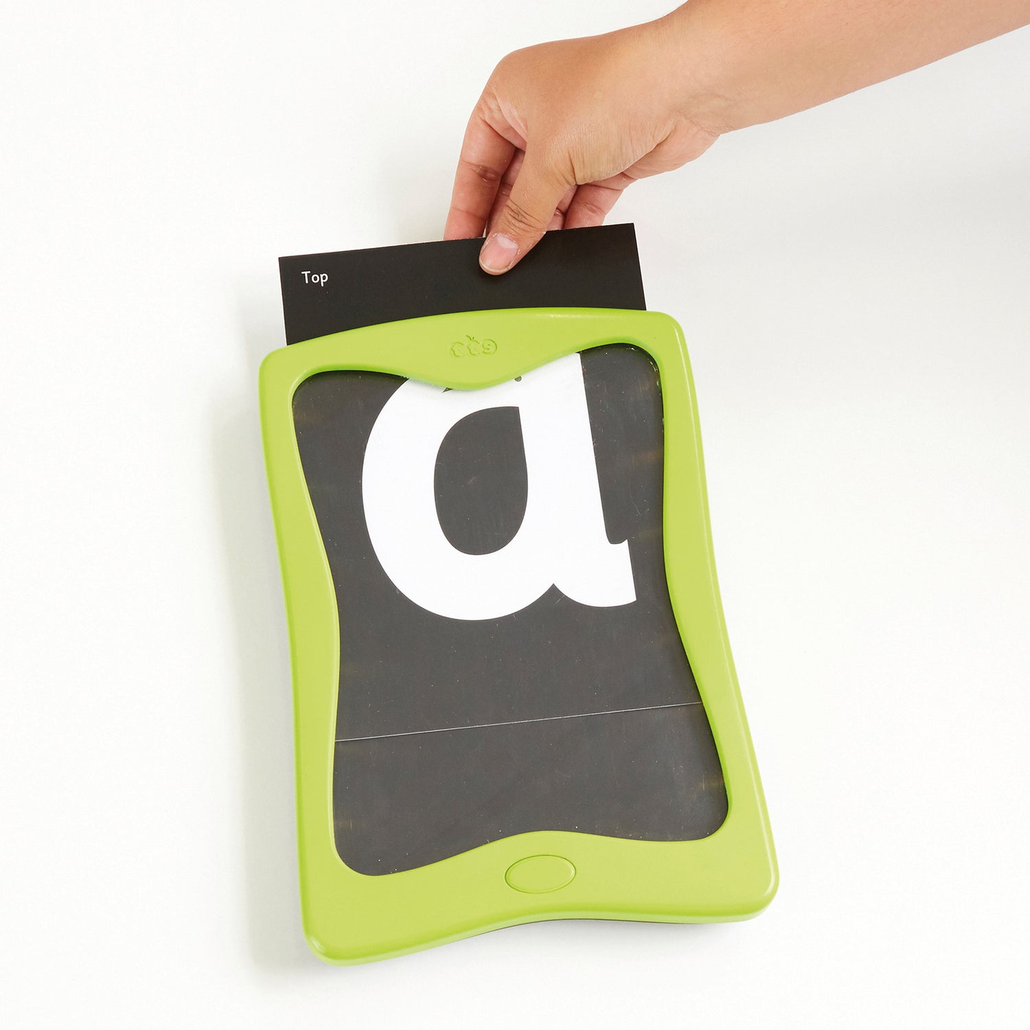 Tāfelē ir speciāla sprauga, kurā var ievietot A5 izmēra šablonu. Tas ļauj izmantot dažādas sagatavotas darba lapas vai skolotāja izveidotus materiālus. Uz šablona var zīmēt un vingrināties, padarot mācīšanos strukturētu un atkārtoti lietojamu.