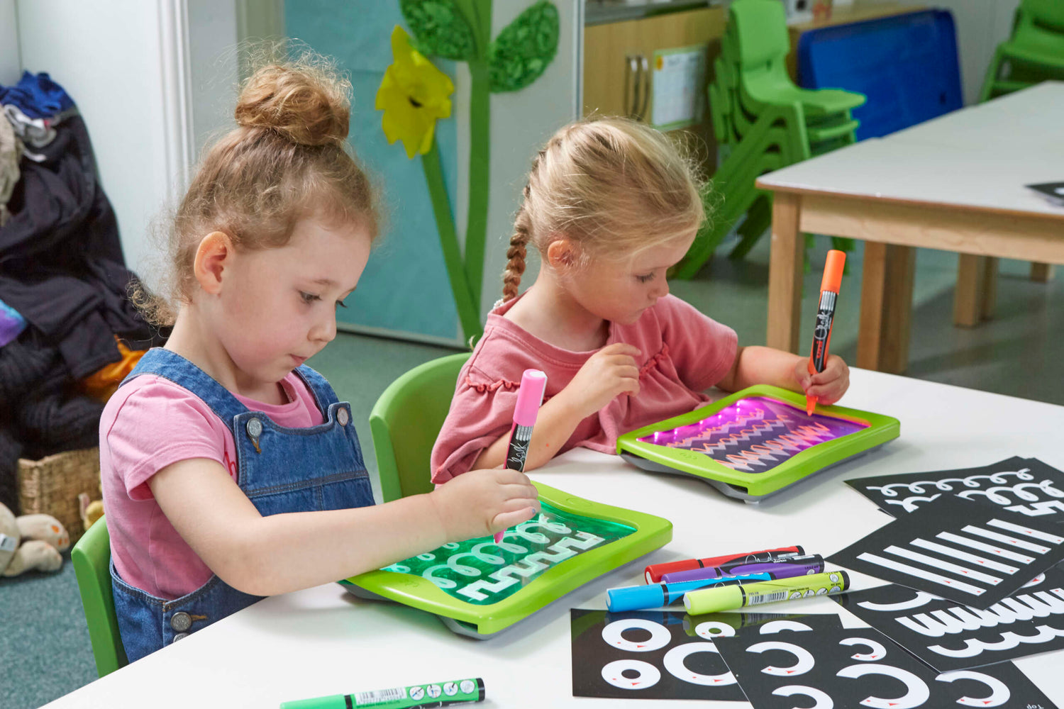 Gaisma, skaidrs kontrasts un maināmas veidnes padara rakstīšanas apguvi redzamu un sistemātisku.