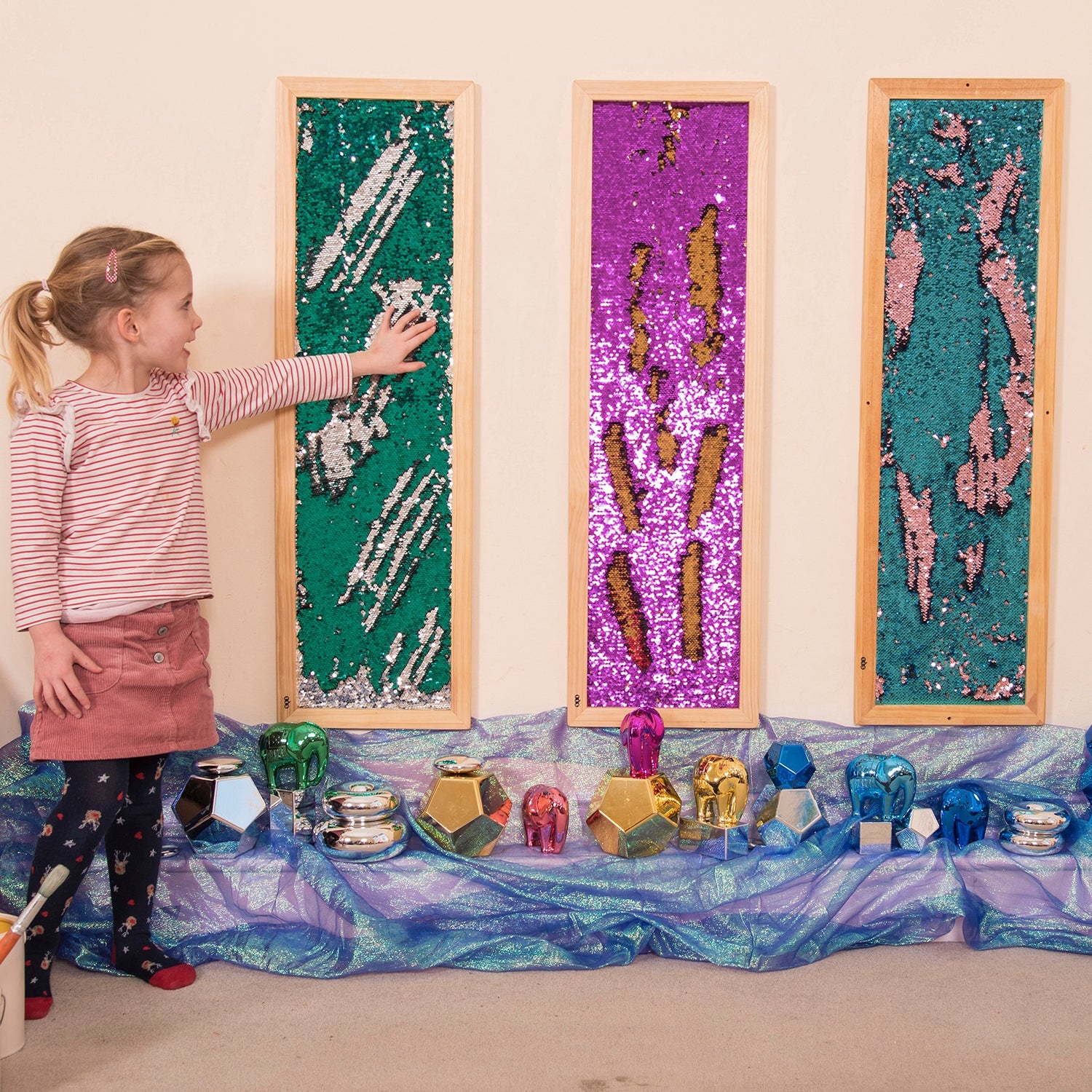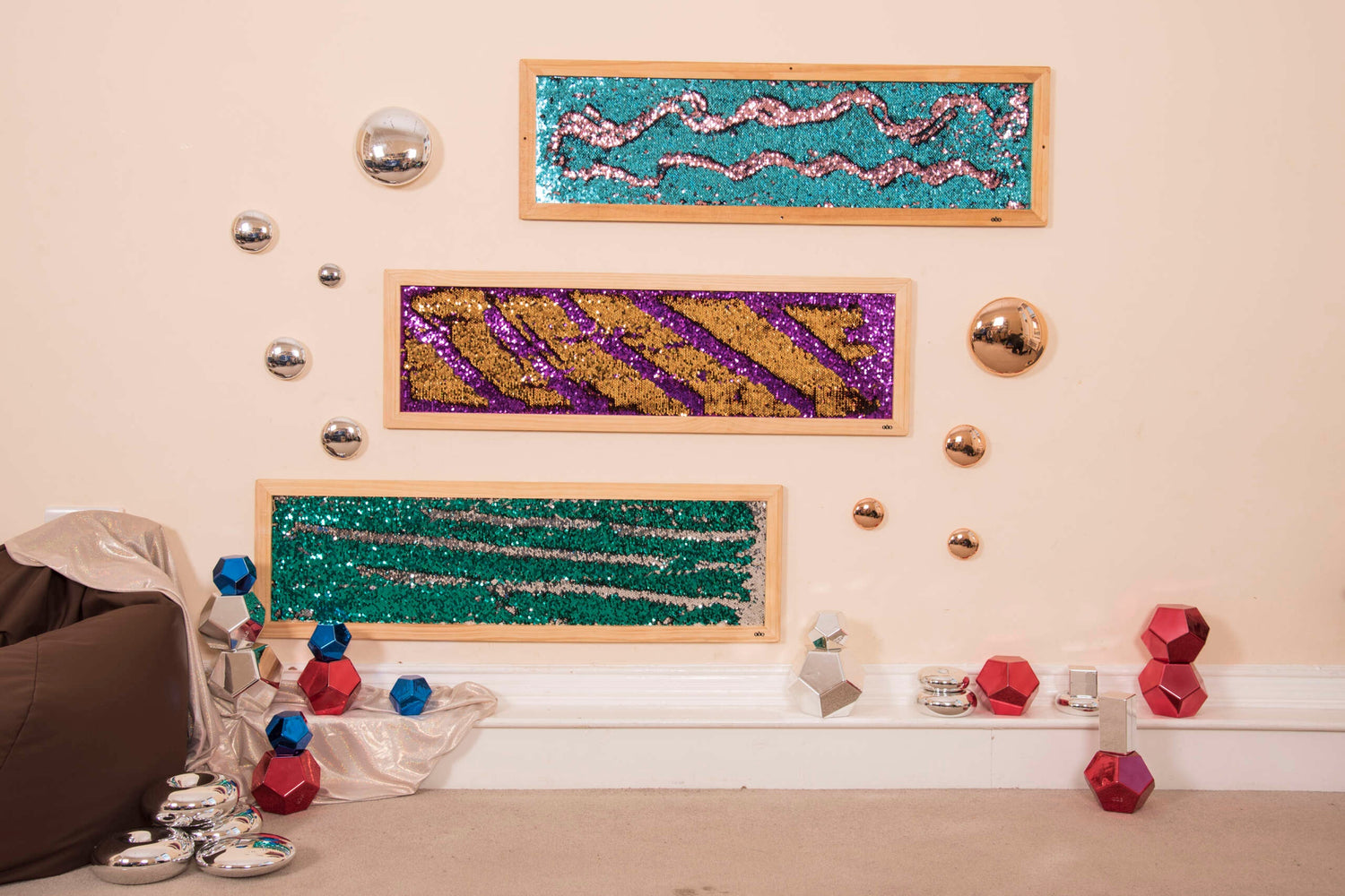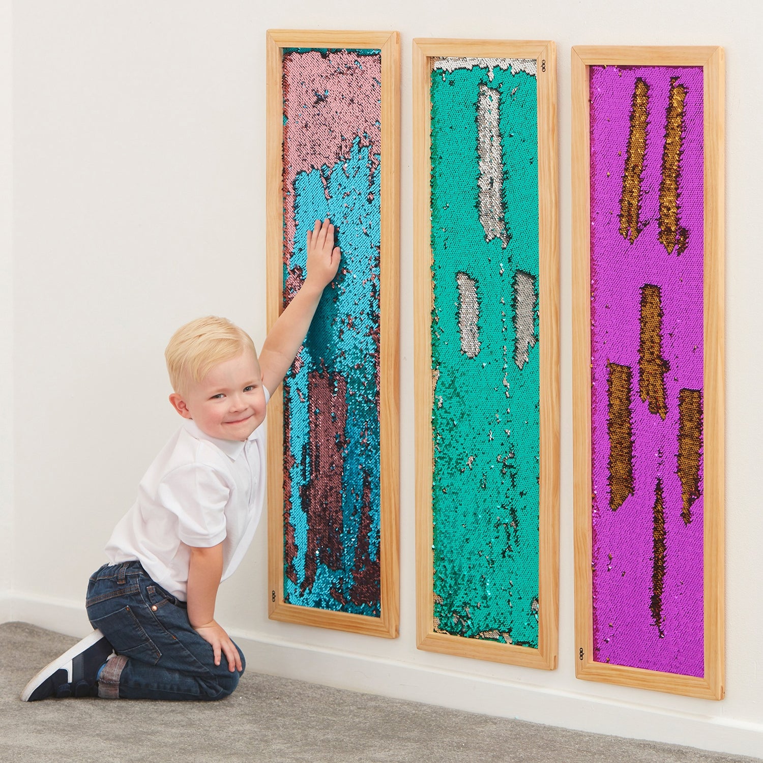 Pie sienas stiprināmi spīdumu paneļi, kas attīsta motoriku un rada nomierinošu sensoru fokusu.