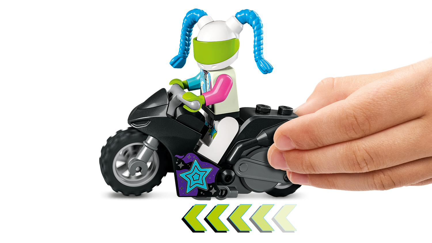 • Mis on karbis? – Kõik lapsed peavad ehitama The Knockdown Stunt Challenge'i, hooratta jõul töötava trikiratta ja telesarja LEGO® City Adventures minifiguurid Galactic Poppy Star ja Harl Hubbs